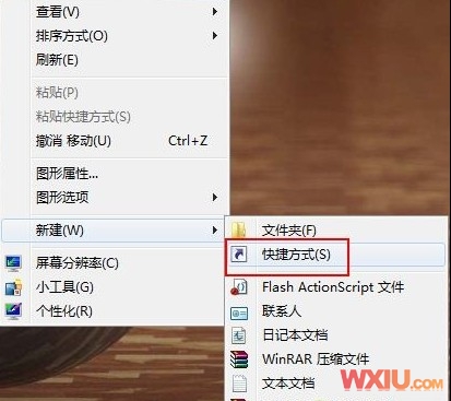 1、在Windows 7桌面上,右键属性新建一个快捷方式。